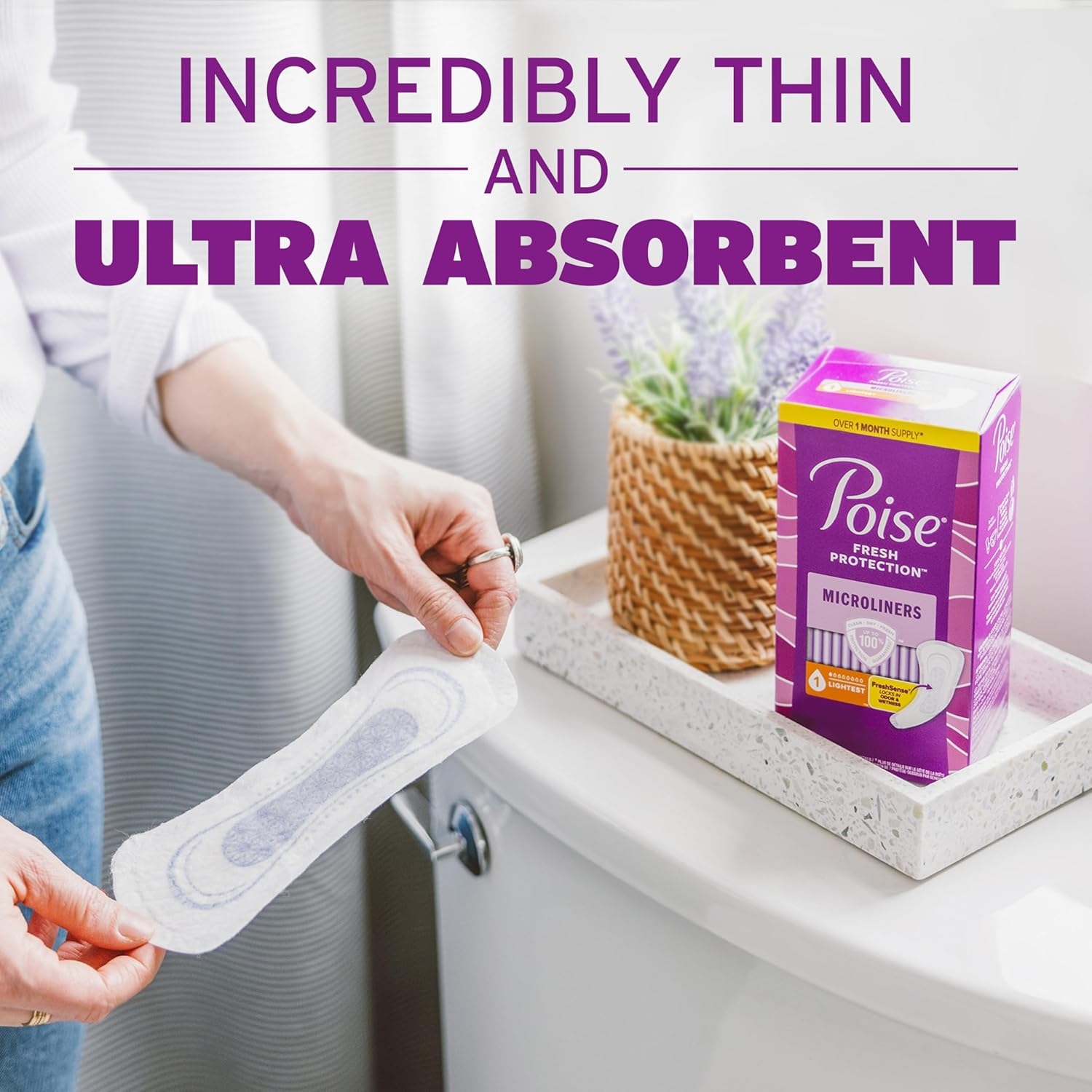 Comfortable and Discreet Protection for Light LeaksThese Poise Daily Liners are a practical solution for anyone dealing with occasional light bladder leaks. The long length offers extra coverage compared to regular pantyliners, and they feel surprisingly comfortable throughout the day—thin, soft, and breathable without adding bulk. I like that they stay in place well, even during busier, more active days.Absorbency is just right for light leaks—it handles small accidents without feeling damp, and the odor control does its job quietly without any overpowering fragrance. The packaging is compact enough to tuck into a purse or travel bag, and the liners are individually wrapped for hygiene and convenience.The main thing to keep in mind is that these are best for very light leaks. For anything heavier, you’d want to step up to a higher absorbency option in the Poise line.Bottom line: A comfortable, reliable, and discreet liner that gives peace of mind for managing light bladder leaks.