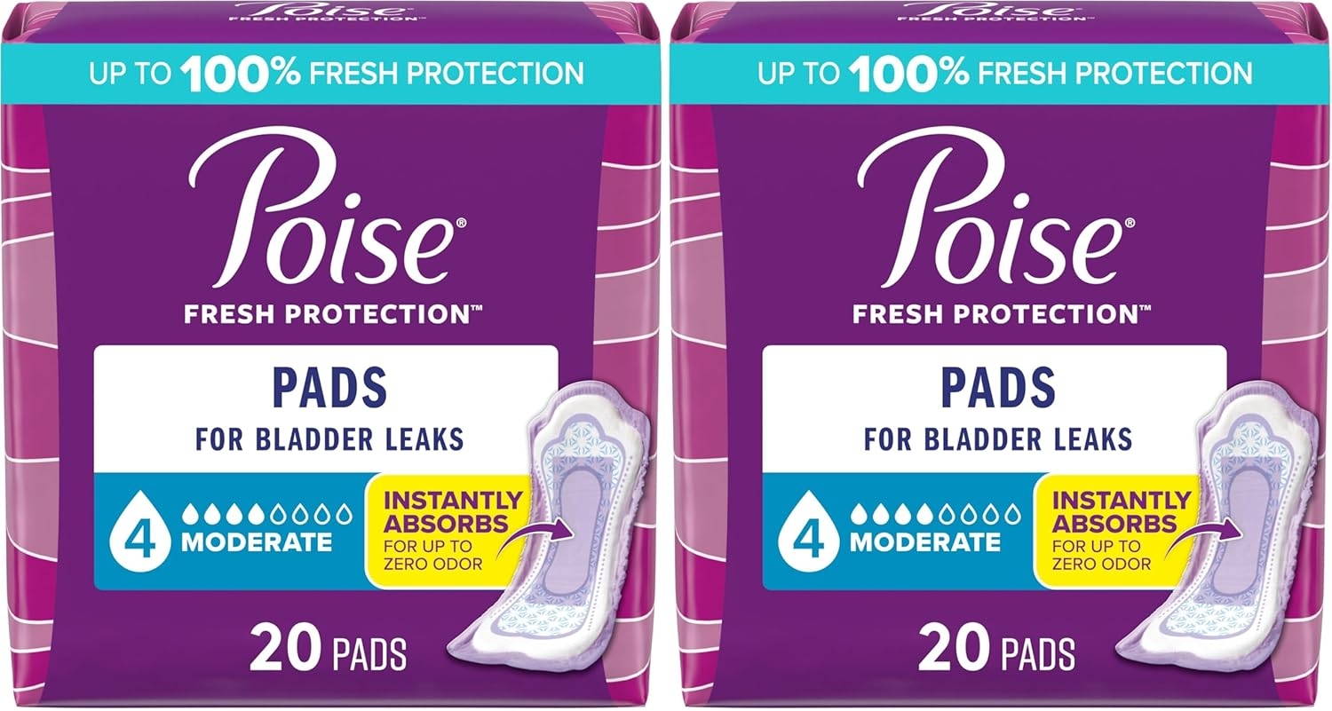 Feel confident with up to 100% clean, dry and fresh protection guaranteed* from Poise Postpartum and Incontinence Pads. Unlike period pads, which are meant for menstrual needs, Poise pads are designed to offer protection against light bladder leaks. Designed to lock in wetness, these disposable incontinence pads feature Poise’s FreshSense system that neutralizes strong bladder leak odors for up to 12 hours for all-day freshness. In addition, Poise bladder control pads offer up to zero leaks, are 10x drier than the leading period pad and deliver up to 12 hours of protection. Our bladder leak pads come with a ContourFit design, making it softly curved to help prevent bunching and has a wider front and back than in the middle to keep you comfortably protected. Poise Postpartum Pads and Incontinence Pads are available in light, moderate, maximum, ultimate, ultra and overnight absorbencies. For lighter absorbency needs, try Poise Daily Liners. Shop for Poise discreetly by ordering online. Poise adult incontinence products are HSA/FSA-eligible in the US. (*Purchase by 12/31/24. Mail in by 1/15/25. Online access required. Limit 1 per household. Original receipt/UPC required. Restrictions apply. See Poise website for details)