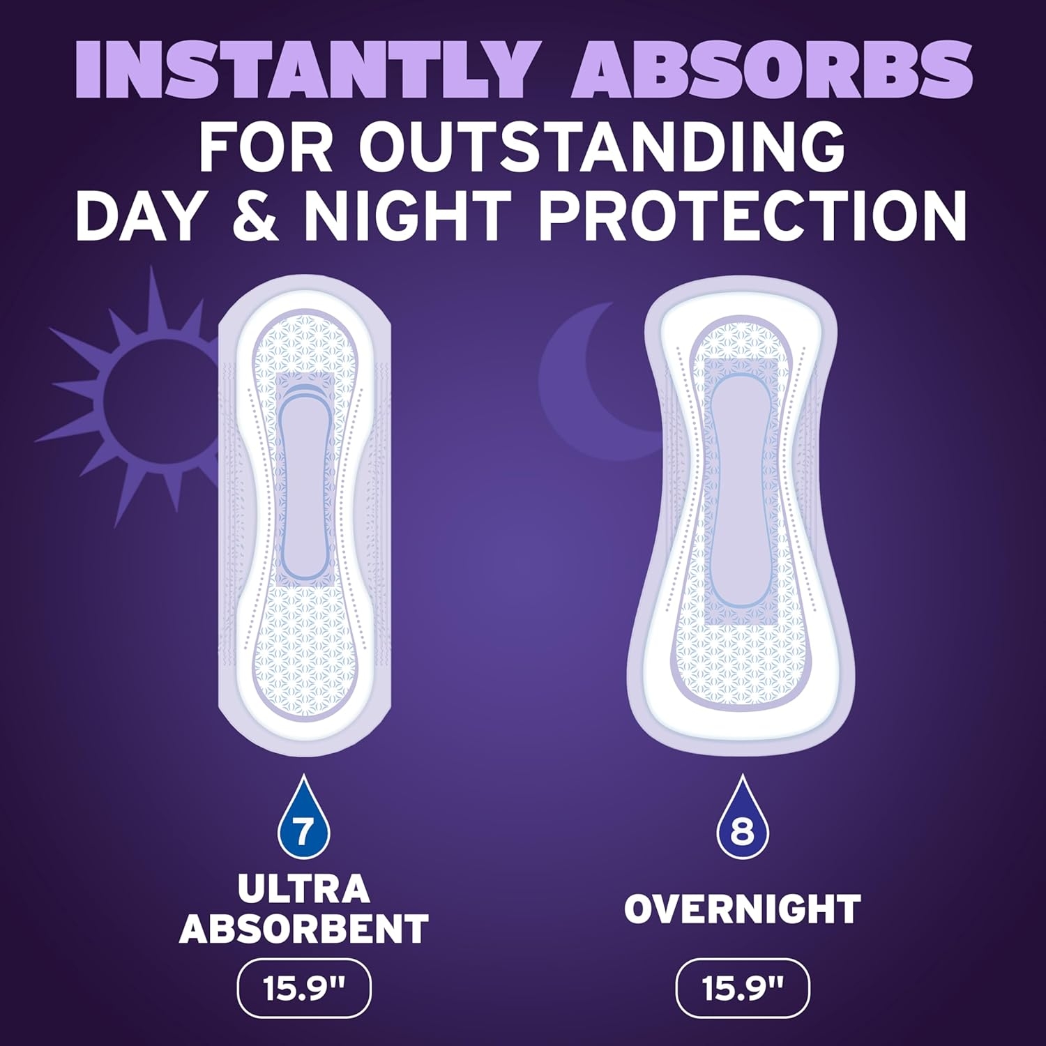 Give yourself the best nighttime protection* with Poise Overnight Incontinence & Postpartum Pads for Bladder Leaks with extra coverage. Unlike period pads, which are meant for menstrual needs, Poise pads are designed to offer protection against light bladder leaks. Poise Overnight Incontinence Pads and offer up to 100% clean, dry and fresh protection for worry-free nights. These disposable incontinence pads instantly absorb for up to zero odor and rapidly lock away more wetness than the leading period pad for amazing dryness. In fact, Poise incontinence pads for women are made with odor-reducing material and helps control odor for up to 12 hours. They also feature a 75% wider back** and a moisture-wicking top layer that is designed to feel dry throughout wear. Plus, each bladder leak pad has a ContourFit design, making it softly curved to help prevent bunching and has a wider front and back than in the middle to help keep you comfortably protected. Poise Postpartum Pads and Incontinence Pads are available in 3 Drop Light, 4 Drop Moderate, 5 Drop Maximum, 6 Drop Ultimate, 7 Drop Ultra, and 8 Drop Overnight absorbencies. Shop for Poise discreetly by having it shipped directly to your door or pick up curbside. Poise adult incontinence products are HSA/FSA-eligible in the US—check with your provider for coverage details. (*vs national brands pads) (**vs Poise Ultra Thin Ultimate Long)